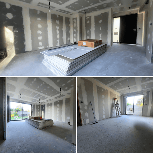 - Travaux de finitions : placo, peinture, revêtements de sols et murs