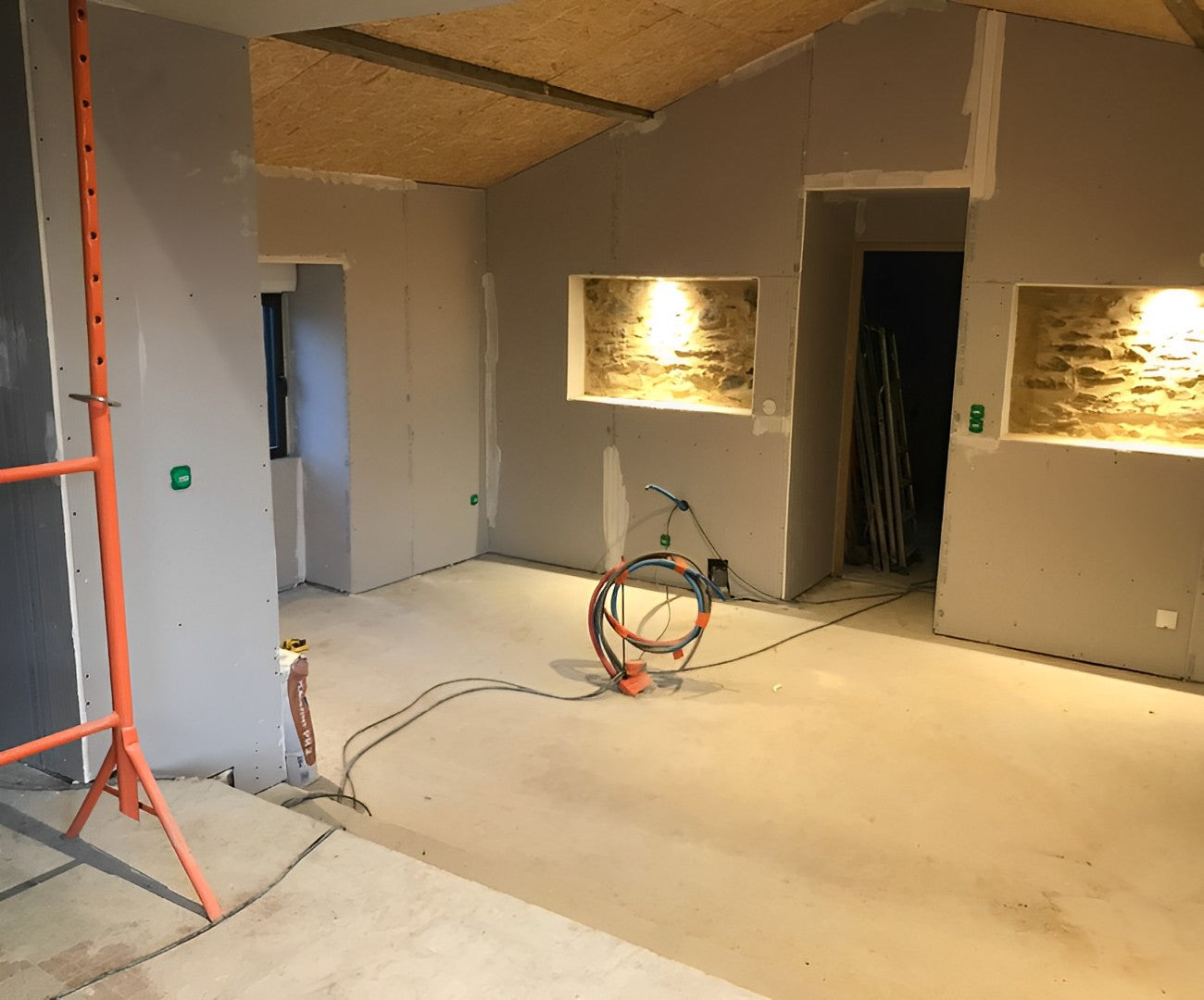 Il s'agit d'une rénovation globale, incluant tous les lots techniques et finitions : électricité, plomberie, isolation, cloisons, revêtements, aménagements, etc. Nous gérons l'ensemble pour vous, avec un interlocuteur unique.